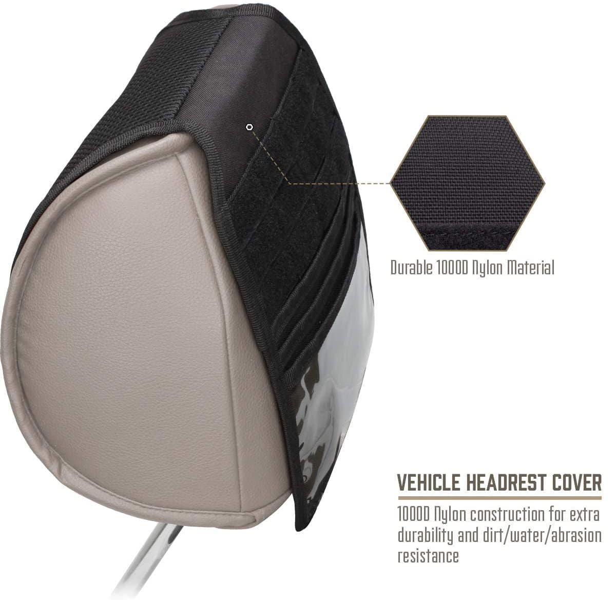- TOUGH MATERIAL: Tactical Headrest Cover is made of 1000D tough Nylon Fabric for extra durability and dirt/water/abrasion resistance. The front comfortable mesh material gives your head and skin soft touch. We offer 30days money back of quality guarantee.